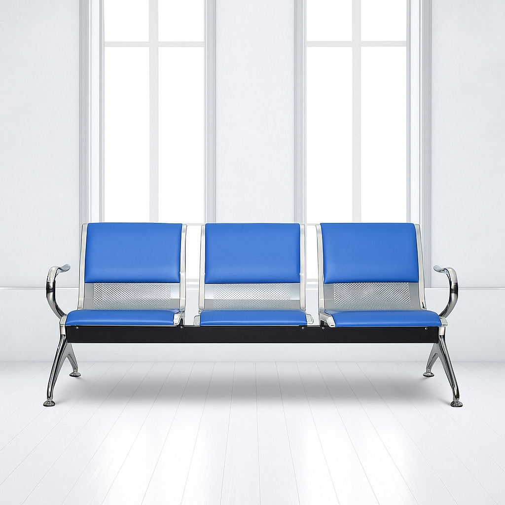 Add a modern, comfortable touch to your reception, clinic, or office lobby with this 3-seater waiting bench. Designed with durable materials and vibrant blue cushioned seats, it combines ergonomic comfort with sleek aesthetics—ideal for high-traffic public spaces.