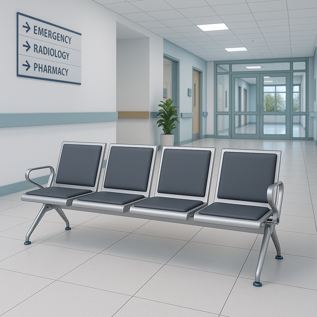 This 4-seater metal waiting bench combines strength, modern style, and comfort to create the perfect seating solution for reception areas, hospitals, offices, airports, and other high-traffic spaces. With its sleek silver frame and padded backrests and seats, it offers both durability and comfort for extended waiting periods.