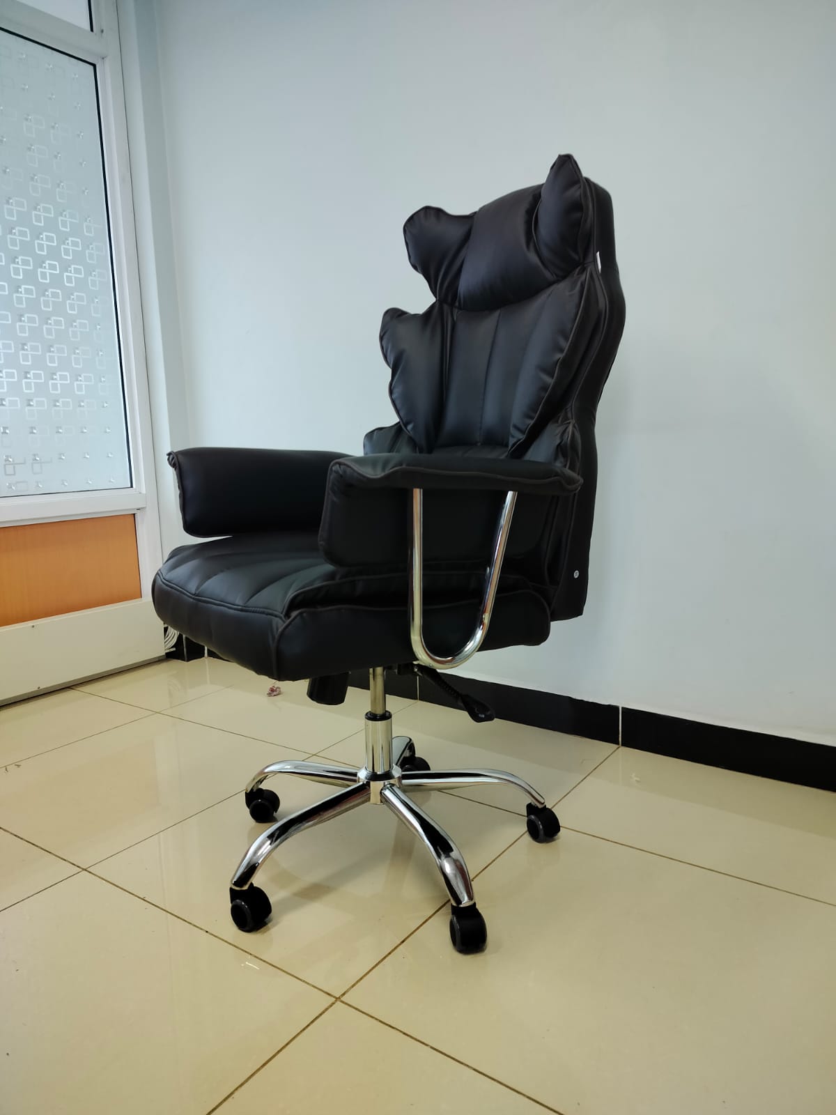 Crafted for those who demand more than just a place to sit, this executive chair delivers an unmistakable combination of comfort, authority, and striking design. Wrapped in soft faux leather with full-body cushioning, its winged high-back silhouette commands attention while offering head-to-toe ergonomic support.