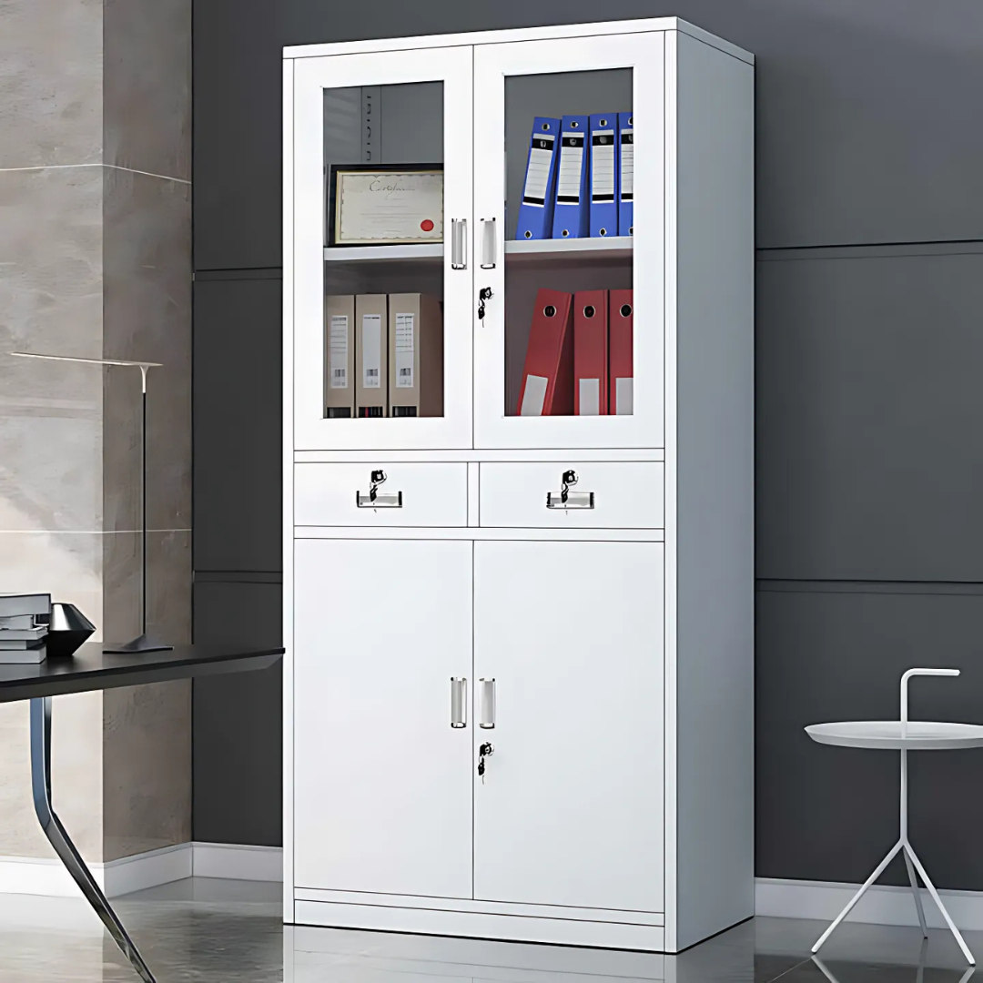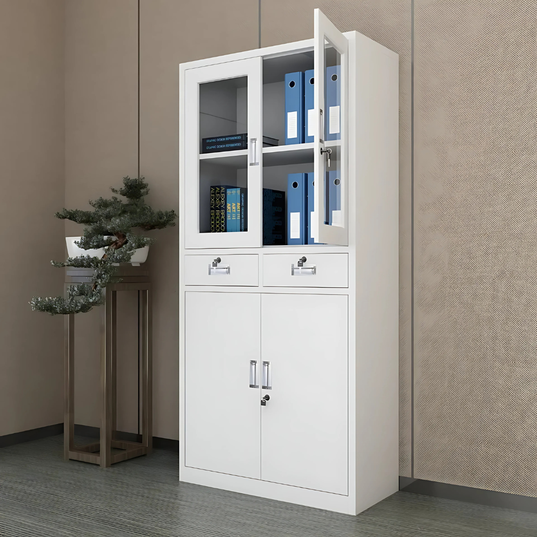 - Offices: Organize paperwork, office supplies, or electronics in the drawers, while showcasing awards or decorative pieces in the glass section.