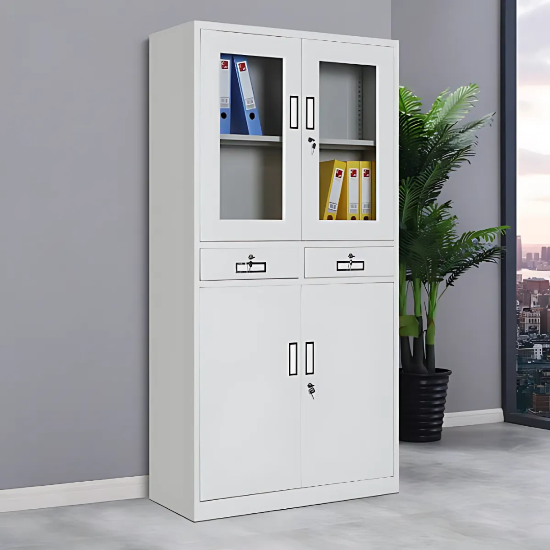 A half glass cabinet with drawers is a versatile and functional piece of furniture that combines aesthetics and practicality. Here’s a detailed description:
